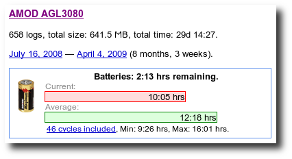 Based on that, GPSLog Labs can compute the average time your batteries last and you can use that to determine if there's enough life in them to cover your planned activity. No more losing valuable logged data because you forgot when you last charged them, and no more having to change the batteries just in case.